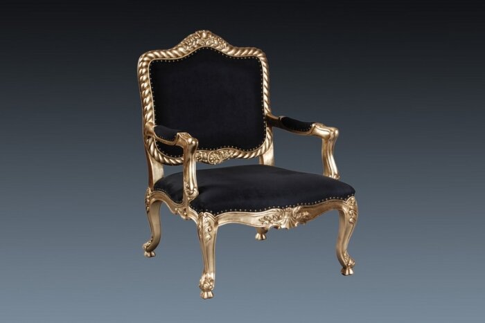 | Flower Carved Sofa In Gold Leaf with Black Velvet |