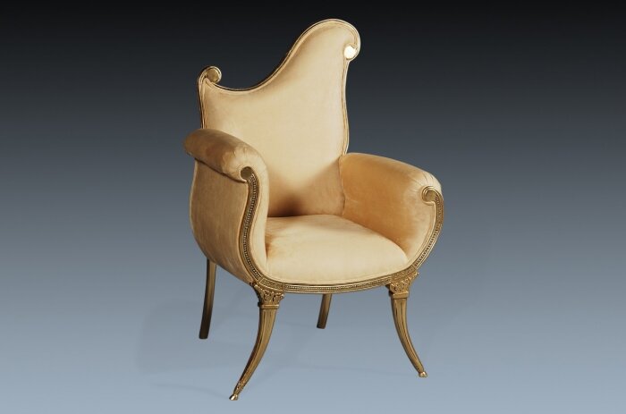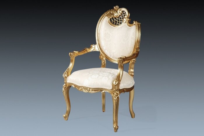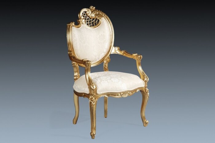 | Flower Carved Sofa In Gold Leaf with Cream Fabric |