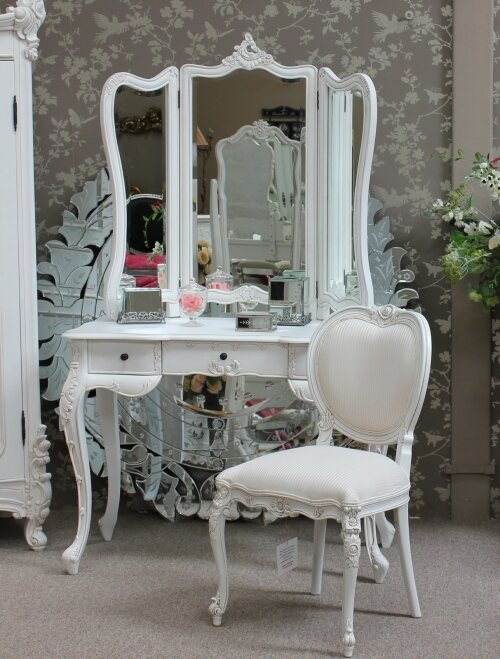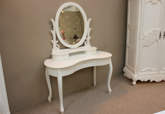 | FW9239A French Shabby Chic Dressing Table with Mirror finished in Antique White |